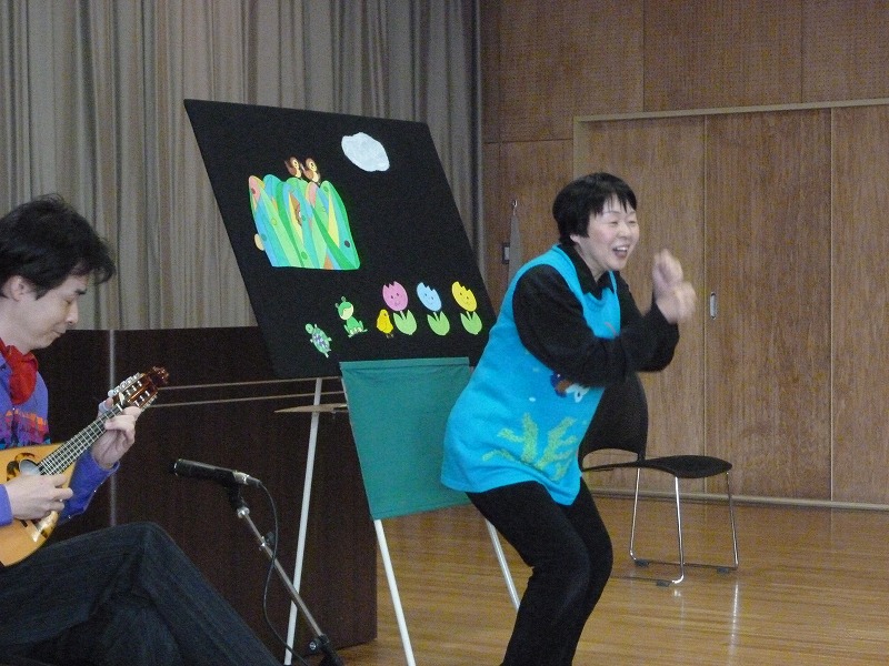 平成25年3月7日(木)に、3月生まれの誕生会を行いお祝いしました。みんなで歌を歌ったり、バースデーケーキのロウソクを消したり、園長先生からプレゼントをもらったりして楽しみました。今年度は園長先生が毎月「色」について紹介しており、3月は「金色」について説明を受けました。また、その後には、子育て広場事業を兼ね、人形劇団「あかぱんつ」による楽しい人形劇を鑑賞し皆で楽しみました。
